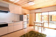 | 広いゆったりとした間取り | 世帯用Ⅰ/49.02㎡(約15坪) 世帯用Ⅱ(単身併用型)/42.41㎡(約13坪) 一般的な施設(7~8坪)に比べ、広くゆったりとしたスペース確保しました。日常生活を「ゆたか」にするくつろぎのリビング空間をご提供いたします。 |